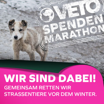 Mit dem Winter beginnt für viele Straßen- und Tierheimtiere in Europa die härteste Zeit des Jahres. In Ländern wie Griechenland, Rumänien, Bulgarien und der Türkei fehlt es an Futter, finanziellen Mitteln für Kastrationen und sicheren Unterkünften. Um den notleidenden Tieren zu helfen, beteiligen auch wir uns am VETO-Spendenmarathon für Tiere 2025, einer der größten Spendenaktionen für Hunde und Katzen in Not.